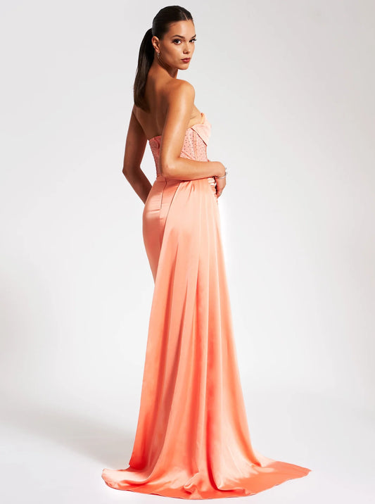 Miss Circle Crystallised Corset Gown Coral